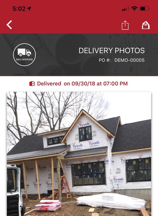 Jobsite Delivery Photos in Roof Hub