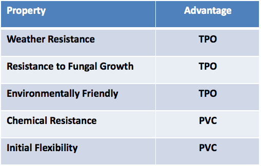 The following chart gives a snapshot of the overall performance of TPO versus PVC: